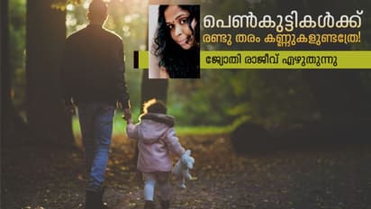 പെൺകുട്ടികൾക്ക് രണ്ടു തരം കണ്ണുകളുണ്ടത്രേ. അതിലൊന്ന് അമ്മയുടേതാണ്. തങ്ങളുടെ അടുത്തുവരുന്ന ഓരോന്നിനേയും ആ കണ്ണുകൾവെച്ച് മനസ്സിലാക്കാം. അതിന്റെ ഉറപ്പില്ലാതെ ഒരാളോടും പരിധിയിൽ കൂടുതൽ അടുക്കരുതെന്ന്. അതൊരു അച്ഛന്റെ മകളോടുള്ള കരുതലായിരുന്നിരിക്കാം. പക്ഷെ, ഞാനറിയാതെ തന്നെ ആ കണ്ണൊരു ശീലമായി. ഇന്നും മാറിയിട്ടില്ലാത്ത സുരക്ഷിതമല്ലാത്ത സമൂഹത്തിൽ ഞാനെന്ന സ്ത്രീക്ക് ആ കണ്ണുകൾ ഉപേക്ഷിക്കാനാവില്ല.