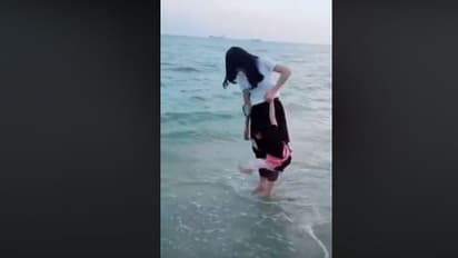 ആദ്യമായി കടല് കാണുകയാണ് കുഞ്ഞ്. എന്നാല്, തിരകളുടെ ശബ്ദവും വരവും കണ്ടതോടെ കുഞ്ഞാകെ പേടിച്ചു പോയി. കൂടെയുള്ളയാളുടെ മേല് അള്ളിപ്പിടിച്ചിരിക്കുകയാണ് പിന്നെ ആള്.