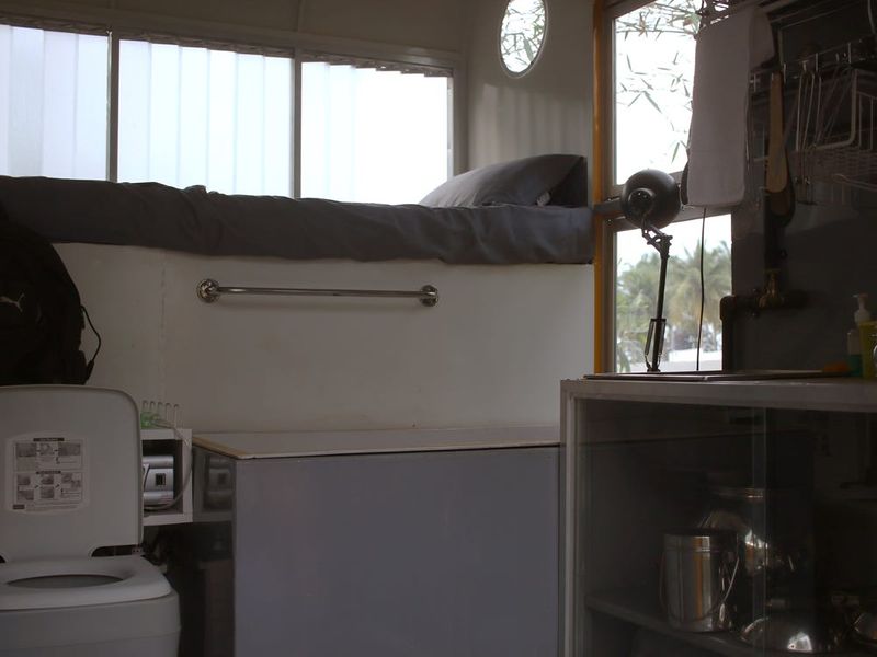 വായുസഞ്ചാരത്തിനായി 45 ശതമാനം തുറന്ന സ്ഥലമുണ്ട് അതിനകത്ത്. ചൂട് കുറയ്ക്കുന്നതിനും വായുസഞ്ചാരത്തിനും അതു സഹായകമാകുന്നു. മോഡുലാർ അടുക്കളയിൽ പാത്രങ്ങൾ, ഒരു ചെറിയ ഗ്യാസ് സിലിണ്ടർ, ഡിഷ് വാഷ്, തുണി ഉണക്കാനുള്ള പാനലുകൾ എന്നിവയ്ക്കുള്ള സ്ഥലവുമുണ്ട്. പോർട്ടിക്കോ പ്രധാന കവാടമായി പ്രവർത്തിക്കുന്നു. അകത്ത് ചെറിയ വിശദാംശങ്ങൾ ക്രോസ്-വെന്റിലേഷനും ഈർപ്പം കുറയ്ക്കാനും സഹായിക്കുന്നു” അദ്ദേഹം പറയുന്നു. 70 ലിറ്റർ കൊള്ളുന്ന ഒരു വലിയ കണ്ടെയ്നർ മലിനജലം ശേഖരിക്കുന്നു. അതുപക്ഷേ സ്വമേധയാ നീക്കം ചെയ്യണം.