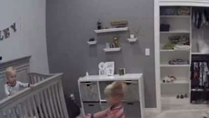 സിസിടിവി ക്യാമറ പകര്ത്തിയ കുട്ടികളുടെ ഈ കുസൃതി ഡെയ്ലി ബംബ്സ് ഫെയ്സ്ബുക്ക് പേജിലാണ് പോസ്റ്റ് ചെയ്തിരിക്കുന്നത്. പിച്ചവെച്ചു നടക്കുന്ന ചേട്ടന് കുഞ്ഞ് അനുജനെ തൊട്ടിലില് നിന്ന് എങ്ങനെ പുറത്ത് കടക്കാമെന്നാണ് കാണിക്കുകയാണ് വീഡിയോയില്. ജൂണ് ആറിനാണ് വീഡിയോ പോസ്റ്റ് ചെയ്തിരിക്കുന്നത്. ദിവസങ്ങള്ക്കം നാല് കോടിയിലധികം പേരാണ് ഈ കുസൃതിത്തരം കണ്ടിരിക്കുന്നത്.