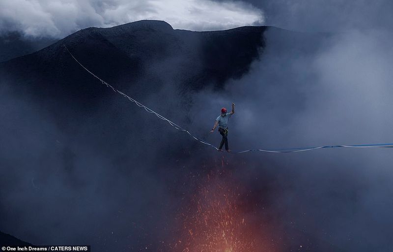 ഏറ്റവും സജീവമായ അഗ്നിപർവ്വതങ്ങളിൽ ഒന്നാണ് യാസൂർ അഗ്നിപർവ്വതം. എപ്പോൾ വേണമെങ്കിലും പൊട്ടിത്തെറിക്കാവുന്ന ഏറ്റവും അപകടകാരിയായ ഇത് തീജ്വാലയും പുകയും കൊണ്ട് നിറഞ്ഞതാണ്. 853 അടി ഉയരത്തിലൂടെയാണ് ഇവർ നടന്നത്. ഇത് ഏറ്റവും ദൈർഘ്യമേറിയതും, സജീവമായതുമായ ഒരു അഗ്നിപർവ്വതത്തിന് മുകളിലുമുള്ള ആദ്യത്തെ ഞാണ്ണിന്മേലുള്ള നടത്തവുമാണ്. 400 മീറ്റർ ഉയരവും നൂറുകണക്കിന് ഡിഗ്രി ചൂടുള്ളതുമായ ലാവയും, സൾഫ്യൂറിക് ആസിഡും അവർ നടക്കാൻ ഉപയോഗിച്ച ചരടിന് കേടുപാടുകൾ വരുത്തുമോ എന്നവർ ഭയന്നിരുന്നു.