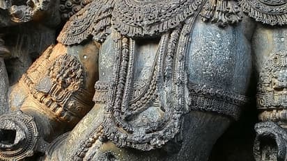 ഹൊയ്സലേശ്വര ക്ഷേത്രത്തിന്റെ പ്രവേശന കവാടത്തില് ദ്വാരപാലികമാര് കൈയും കാലും മുറിഞ്ഞ് അധിനിവേശത്തിന്റെ ഓര്മ്മപ്പാടുകളായ് നില്ക്കുന്നു. അമ്പലത്തിനകത്ത് സ്തൂപങ്ങളിലും മച്ചിലുമൊക്കെ നിറയെ കൊത്തു പണികളാണ്. കണ്ണാടിയേന്തിയ വനിതയാണു ഏറ്റവും മനോഹരമായത്.