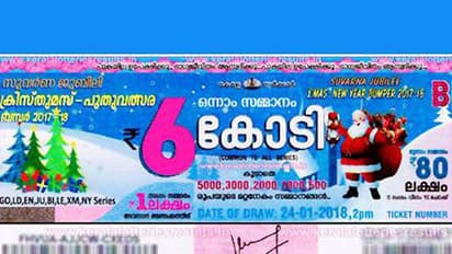 തിരുവന്തപുരം: സംസ്ഥാന സര്ക്കാരിന്റെ ക്രിസ്മസ് പുതുവത്സര ബംബറിന്റെ ആറ് കോടിയുടെ സമ്മാനം മുന് പഞ്ചായത്ത് മെമ്പര്ക്ക്. തിരുവനന്തപുരം കിളിമാനൂര് സ്വദേശിയായ മുന് പഞ്ചായത്ത് മെമ്പര് ബി. രത്നാകരന് പിള്ളയ്ക്കാണ് ലഭിച്ചത്. നഗരൂര് പഞ്ചായത്തിലെ മുന് അംഗമാണ് രത്നാകരന് പിള്ള. വെഞ്ഞാറമ്മൂട് പുല്ലമ്പാറ സ്വദേശിയായ ജറാര് വിറ്റ എല്.ഇ 261550 നമ്പര് ടിക്കറ്റിനാണ് സമ്മാനം ലഭിച്ചത്. ജറാര് തിരുവനന്തപുരം പുളിമൂട് ജംഗ്ഷനിലെ ഭാഗ്യക്കുറി ഓഫീസില് നിന്നെടുത്ത 480 ടിക്കറ്റുകളില് ഒന്നിനാണ് സമ്മാനം ലഭിച്ചത്.