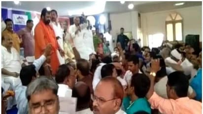 ബീഹാറില് എന്ഡിഎ സഖ്യത്തിന് വേണ്ടി ബിജെപിയും ജെഡിയുവും 17 വീതം സീറ്റുകളിലാണ് മത്സരരംഗത്തുള്ളത്. ആറ് സീറ്റുകളില് എല്ജെപിയും മത്സരിക്കുന്നുണ്ട്. എല്ജെപി സ്ഥാനാര്ത്ഥി പശുപതി കുമാര് പരാശിന്റെ തെരഞ്ഞെടുപ്പ് പ്രചാരണം സംബന്ധിച്ച് ചര്ച്ച ചെയ്യാന് ചേര്ന്ന പൊതുയോഗമാണ് കയ്യാങ്കളിയില് കലാശിച്ചത്. രാമക്ഷേത്രവിഷയം പ്രചാരണായുധമാക്കേണ്ടതില്ലെന്ന് ജെഡിയു നേതാവ് സഞ്ജയ് കുമാര് പറഞ്ഞതോടെ ബിജെപി പ്രവര്ത്തകര് എതിര്പ്പ് പ്രകടിപ്പിക്കുകയായിരുന്നു, പ്രകോപിതരായ ഇവര് കസേരകള് എടുത്തെറിയുകയും മേശ തല്ലിപ്പൊട്ടിക്കുകയും ചെയ്തു. വേദിയിലേക്ക് തള്ളിക്കയറി ആക്രമണം നടത്താനും തയ്യാറായി.