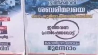 ആറ്റിങ്ങലില് കോണ്ഗ്രസ് പതിച്ച പോസ്റ്ററുകളില് ' ശബരിമലയെ കലാപഭൂമിയാക്കിയവര്ക്കെതിരെ ഇത്തവണത്തെ പ്രതിഷേധ വോട്ട്. കോണ്ഗ്രസിനൊപ്പം മുന്നേറാം' എന്നാണ് എഴുതിയിരിക്കുന്നത്. ശബരിമലയുടെ ചിത്രങ്ങളോ പൊലീസ് നടപടിയോ പ്രചാരണായുധമാക്കരുതെന്ന മുഖ്യ തെരഞ്ഞെടുപ്പ് കമ്മീഷന്റെ ആവര്ത്തിച്ചുള്ള നിര്ദ്ദേശം വന്നതിന് പുറകേയാണ് പോസ്റ്ററുകള് പതിച്ചിരിക്കുന്നത്.