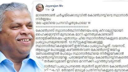 വയനാട്, ആലപ്പുഴ പോലുള്ള കഴിഞ്ഞതവണ കോൺഗ്രസ്സ് ജയിച്ച മണ്ഡലങ്ങളിൽ പോലും സ്ഥാനാര്ത്ഥികളെ നിശ്ചയിക്കാന് കഴിയാത്ത കോണ്ഗ്രസ് പാര്ട്ടി 12 സീറ്റുകളിലേക്കുള്ള സ്ഥാനാർത്ഥികളെയാണ് ഇതുവരെ പ്രഖ്യാപിച്ചത്. അത് തന്നെ 'മല എലിയെ പ്രസവിച്ചതു പോലെ'യാണെന്നും എം വി ജയരാജന് അഭിപ്രായപ്പെട്ടു. പാര്ട്ടിയിലെ തര്ക്കം പോലും പരിഹരിക്കാന് കഴിയാത്ത കോണ്ഗ്രസിനടുത്തേക്കാണ് കേരളാ കോണ്ഗ്രസ് എമ്മിലെ തര്ക്കം പരിഹരിക്കണമെന്നാവശ്യപ്പെട്ട് പി ജെ ജോസഫ് ചെന്നതെന്നും എം വി ജയരാജാന് തന്റെ ഫേസ്ബുക്ക് പേജില് എഴുതുന്നു.