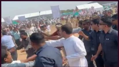 തെലങ്കാനയിലെ ഹൊസുര്നഗറിലായിരുന്നു സംഭവം നടന്നത്. വലിയ കൂട്ടം കോണ്ഗ്രസ് പ്രവര്ത്തകരാണ് ഇവിടെ രാഹുലിന്റെ പരിപാടിക്ക് എത്തിയിരുന്നു. ഏറെ നേരമായി കാണാന് കാത്തുനിന്ന ജനക്കൂട്ടത്തിന് അടുത്തേക്ക് രാഹുല് എത്തിയതോടെ ജനം ഇളകിമറിയുകയായിരുന്നു.