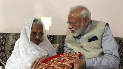 പാവഗധിലെ ശക്തി പീത് ക്ഷേത്രത്തിൽ പൂജിച്ച മഹാകാളിയുടെ ഷാളായിരുന്നു മോദിക്ക് അമ്മ സമ്മാനമായി നൽകിയത്. കഴിഞ്ഞ തെരഞ്ഞെടുപ്പിലും മോദിക്ക് അമ്മ സമ്മാനം നൽകിയിരുന്നു. ഗുജറാത്തിലെ 26 സീറ്റിലും ബിജെപി ജയിക്കുന്നതിന് 500 രൂപയുടെ നോട്ടും മധുരപലഹാരങ്ങളുമാണ് നൽകിയത്. അഹമ്മദാബാദിലായിരുന്നു മോദിയുടെ വോട്ട്. ബിജെപി ദേശീയ അധ്യക്ഷൻ അമിത് ഷായും അദ്ദേഹത്തിനൊപ്പം വോട്ട് രേഖപ്പെടുത്താൻ ഉണ്ടായിരുന്നു.