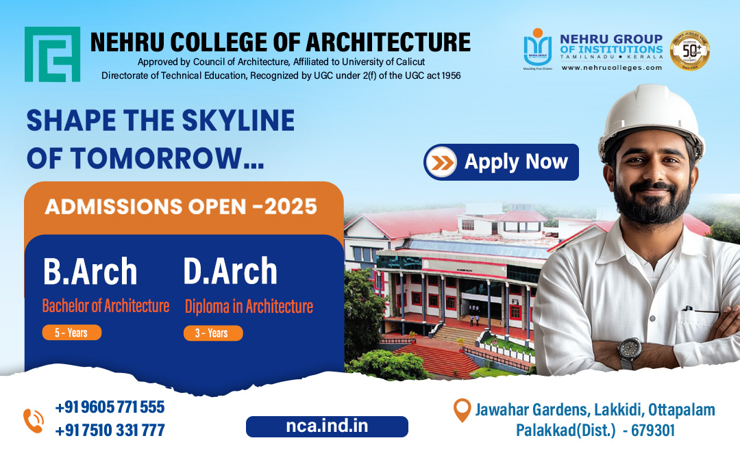 ബിരുദ, ഡിപ്ലോമ കോഴ്സുകൾക്ക് നെഹ്റു കോളജ് ഓഫ് ആർക്കിടെക്ചർ