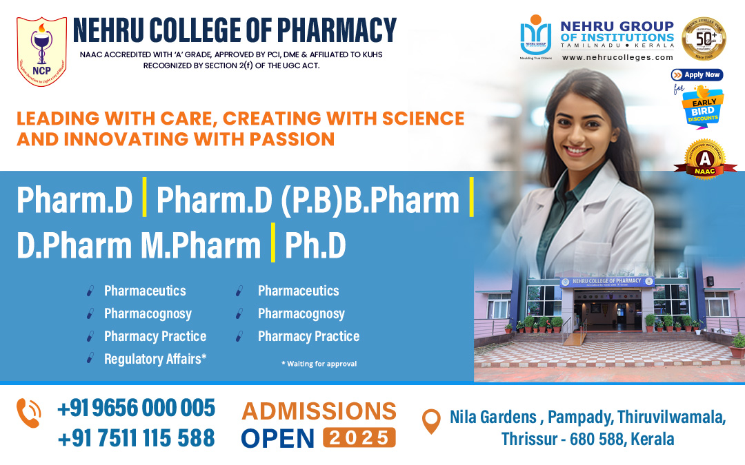 ഫാർമസി കോഴ്സുകൾക്ക് നെഹ്റു കോളേജ് ഓഫ് ഫാർമസി