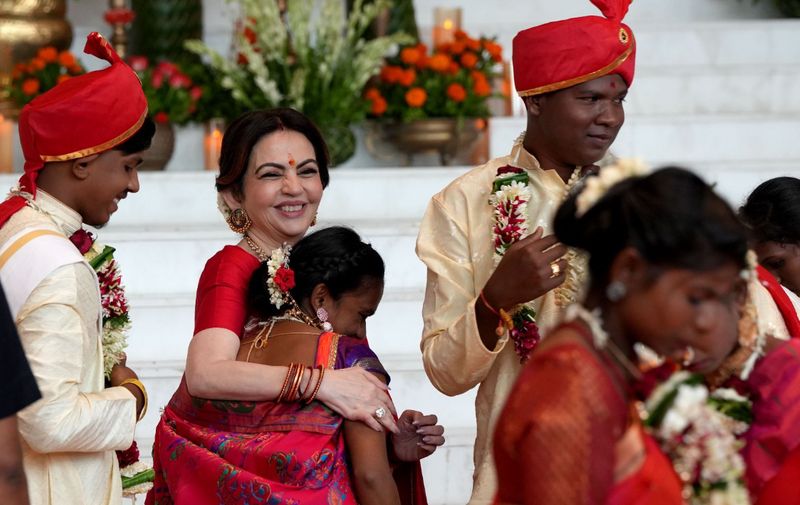 അനന്ത് അംബാനിയുടെയും രാധിക മർച്ചൻ്റിൻ്റെയും വിവാഹത്തിന് പത്ത് ദിവസം മാത്രം ശേഷിക്കെ, അംബാനി കുടുംബം നിരാലംബരായ ദമ്പതികൾക്കായി സമൂഹ വിവാഹ ചടങ്ങ് നടത്തി. നവി മുംബൈയിൽ റിലയൻസ് കോർപ്പറേറ്റ് പാർക്കിൽ (ആർസിപി) നടന്ന സമൂഹ വിവാഹത്തിൽ പാൽഘർ ജില്ലയിലെ 50 ദമ്പതികൾ വിവാഹിതരായി. ചടങ്ങിൽ മുകേഷ് അംബാനി, നിത അംബാനി, ആകാശ് അംബാനി, ശ്ലോക അംബാനി, ഇഷ അംബാനി, ആനന്ദ് പിരാമൽ എന്നിവരുൾപ്പെടെ മുഴുവൻ കുടുംബവും പങ്കെടുത്തു.