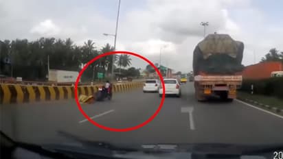ബംഗളൂരു: ബൈക്കുകൾ കൂട്ടിയിടിച്ച് ദമ്പതികൾ റോഡിലേക്ക് തെറിച്ച് വീണിട്ടും ബൈക്ക് നിയന്ത്രണം തെറ്റാതെ ഓടിയത് അരകിലോമീറ്റർ. ബൈക്കിലുണ്ടായിരുന്ന ദമ്പതികളുടെ കുഞ്ഞിനെയും കൊണ്ടാണ് ബൈക്ക് ഏവരേയും അത്ഭുതപ്പെടുത്തി അരകിലോമീറ്റർ ഓടിയത്. ഞായറാഴ്ച്ച വൈകുന്നേരം 3.30നാണ് സംഭവം നടക്കുന്നത്. ബൈക്കിന് പുറകിൽവന്ന കാറിൽ ഘടിപ്പിച്ചിരുന്ന ക്യാമറയിലാണ് അപകടത്തിന്റെ ദൃശ്യങ്ങൾ പതിഞ്ഞത്.
