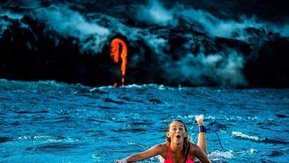 പസഫിക് സമുദ്രത്തിലെ ലാവ ഒഴുകുന്ന കീല് അഗ്നിപര്വ്വതത്തിന് താഴെ നീന്തി എത്തി ചരിത്രം സൃഷ്ടിച്ചിരിക്കുയാണ് സാഹസികതക്ക് പേര് കേട്ട് അലിസണ് ടീല്. ചുട്ടു പൊള്ളുന്ന വെള്ളത്തില് ബിക്കിനി അണിഞ്ഞ് അലിസണ് നീന്തി തുടക്കുന്ന വീഡിയോ സോഷ്യല് മീഡിയ സൈറ്റുകളില് വൈറലായി മാറി കഴിഞ്ഞു