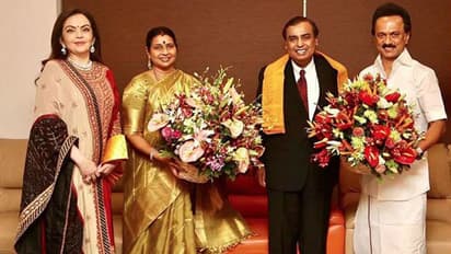 ഡിഎംകെ അധ്യക്ഷന് എം കെ സ്റ്റാലിനെ ചെന്നൈയിലെ അദ്ദേഹത്തിന്റെ വീട്ടിലെത്തിയാണ് മുകേഷ് അംബാനിയും നിത അംബാനിയും മകന്റെ വിവാഹക്ഷണകത്ത് നല്കിയത്. ഇതിന്റെ ചിത്രങ്ങള് സ്റ്റാലിന് തന്നെ തന്റെ ട്വിറ്ററിലൂടെ പങ്കുവെച്ചു.