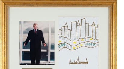 ട്രംപിന്റെ ചിത്രത്തിനൊപ്പം മുന് പ്രസിഡന്റ് ജോണ് എഫ് കെന്നടി വരച്ച എണ്ണഛായ ചിത്രവും ആരാധകര്ക്ക് ലേലത്തിലൂടെ സ്വന്തമാക്കാം. പ്രസിഡന്റ് എബ്രഹാം ലിങ്കണിന്റെ അന്ത്യകര്മ്മങ്ങള്ക്ക് ആദരം ഏകിയ ബ്യൂഗിളും ടെക്സാസ് ലേലത്തിന് ഉണ്ട്.