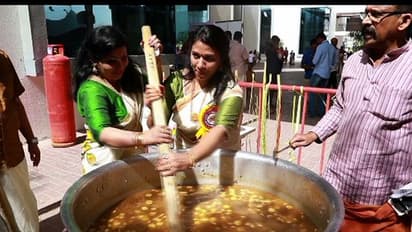 മഹാഭഗവതി സേവയോടെയാണ് പൊങ്കാല മഹോത്സവത്തിന് തുടക്കം കുറിച്ചത്. പുലര്ച്ചെ അഞ്ചിന് നടതുറന്നപ്പോള്തന്നെ നിരവധി ഭക്തര് ചടങ്ങ് നടന്ന അല് ജര്ഫിലെ ഹാബിറ്റാറ്റ് സ്കൂളിലേക്കെത്തി.