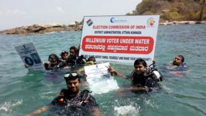 2000 ജനുവരി ഒന്നിന് ജനിച്ചവര്ക്ക് ഈ വര്ഷമാണ് വോട്ടര് പട്ടികയില് പേര് ചേര്ക്കാന് കഴിയുന്നത്. മില്ലേനിയല്സ് എന്നാണ് ഇവരെ വിളിക്കപ്പെടുന്നത്. ഇവരുടെ തിരിച്ചറിയല് കാര്ഡ് വിതരണമാണ് ഉദ്ദ്യോഗസ്ഥര് ആഘോഷപൂര്വ്വം നടത്തിയത്. ഇത്തരത്തില് 13 പേരാണ് ഉത്തര കന്നഡ ജില്ലയില് നിന്ന് വോട്ടര് പട്ടികയില് പേര് ചേര്ത്തത്. ഇവരില് നിന്ന് തെരഞ്ഞെടുത്ത ദീക്ഷ, പൃഥ്വി എന്നിവര്ക്കാണ് കടലിനടിയില് പ്രത്യേക ചടങ്ങ് സംഘടിപ്പിച്ച് തിരിച്ചറിയല് കാര്ഡ് വിതരണം ചെയ്തത്. ഡെപ്യൂട്ടി കമ്മീഷണര് എസ്.എസ് നകുല്, ജില്ലാ പഞ്ചായത്ത് എക്സിക്യൂട്ടീവ് ഓഫീസര് എല് ചന്ദ്രശേഖര നായിക്, സ്കൂബാ ഡൈവിങ് വിദഗ്ദന് രഞ്ജിത്ത് പൂഞ്ച എന്നിവരാണ് ദേവഭാഗ് ബീച്ചില് അറബിക്കടലില് 15 അടിയോളം ആഴത്തില് വെച്ച് നടന്ന ചടങ്ങില് പങ്കെടുത്തത്. 15 മിനിറ്റോളം മാത്രമാണ് ചടങ്ങ് നീണ്ടുനിന്നത്.
