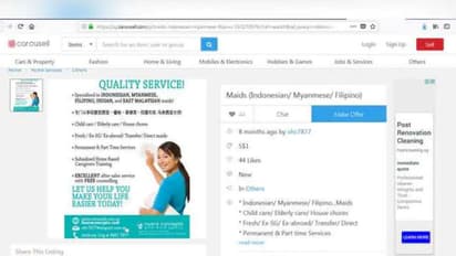 സിംഗപ്പൂര്: വീട്ടുജോലിക്കാരെ റിക്രൂട്ട് ചെയ്യുന്ന ഏജന്സി നല്കിയ പരസ്യം വിവാദത്തില്. എസ്.ആര്.സി റിക്രൂട്ട്മെന്റ് എല്.എല്.പി എന്ന ഏജന്സിയാണ് 'വീട്ടുജോലിക്കാരികള് വില്പനയ്ക്ക്' എന്ന പരസ്യം നല്കിയതിനെ തുടര്ന്ന് വെട്ടിലായത്.