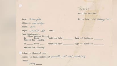 ആപ്പിള് സ്ഥാപകന് സ്റ്റീവ് ജോബ്സ് 45 വര്ഷങ്ങള്ക്ക് മുന്പ് 1973ല് ഒരു ജോലി തേടി നടന്നപ്പോള് എഴുതിയതാണിത്. സ്റ്റീവന് ജോബ്സ് എന്നാണ് പേരെഴുതിയിരിക്കുന്നത്. ഏത് പദവിയിലേക്കാണ് അപേക്ഷ നല്കുന്നതെന്ന് എഴുതിയിട്ടില്ല. ഇലക്ട്രോണിക്സ് ടെക് / ഡിസൈന് എഞ്ചിനീയര് എന്നിവയാണ് പ്രത്യക കഴിവുകളായി അവകാശപ്പെടുന്നത്. കംപ്യൂട്ടര് അറിയുമോ എന്ന ചോദ്യത്തിന് അതെ എന്ന് മറുപടിയുണ്ട്! ഐ ഫോണ് കൊണ്ട് ലോകത്തെ വിസ്മയിപ്പിച്ച സ്റ്റീവിന് അന്ന് പക്ഷേ ഫോണ് എന്ന കോളത്തില് എഴുതാന് ഒന്നുമില്ലായിരുന്നു. None എന്നാണ് പൂരിപ്പിച്ചിരിക്കുന്നത്.