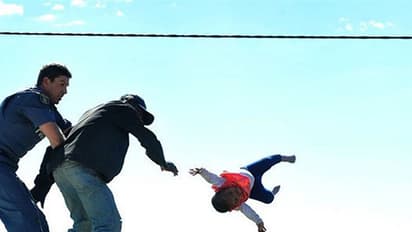 ഒടുവില് ഇയാള് കുഞ്ഞിനെ താഴേക്ക് എറിഞ്ഞു. എന്നാല് കുഞ്ഞ് നേരെ എത്തിയത് താഴെ ന്ല്ക്കുന്ന പോലീസുകാരുടെ കയ്യില്. ഒരു പോറലുപോലും ഏല്ക്കാതെ കുഞ്ഞ് രക്ഷപ്പട്ടു. അചതേസമയം കുഞ്ഞിനെ വലിച്ചെറിഞ്ഞ പിതാവിന് നേരെ പൊലീസ് കേസെടുത്തു. കൊലപാതക ശ്രമത്തിനാണ് പൊലീസ് കേസെടുത്തിരിക്കുന്നത്.