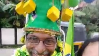 ബ്രസീല് ജഴ്സിയും തലയില് മഞ്ഞയും പച്ചയുമായ ബോളുകളും സ്പോഞ്ച് കട്ടകളും തൂവാനകളായി രണ്ട് നില തൊപ്പിയും തന്റെ ഇരുചക്രവാഹനത്തിന്റെ പിറകില് സാക്ഷാല് നെയ്മറുടെ കട്ടൗട്ടും... കട്ട ബ്രസീല് ആരാധകനായ സാലി ആരാലും ശ്രദ്ധിക്കുമാറാണ് യാത്ര.