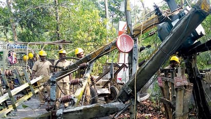 ചേര്ത്തല തെക്ക് പഞ്ചായത്തില് അരീപ്പറമ്പില് ഗാന്ധിജി ജംഗ്ഷന് സമീപം ട്രാന്സ്ഫോര്മര് റോഡിലേക്ക് മറിഞ്ഞു. കാറ്റില് കൂറ്റന് കോണ്ക്രീറ്റ് തൂണുകള് ഒടിഞ്ഞാണ് 11 കെ വി ലൈനുള്പ്പെടെ കടന്നുപോകുന്ന ട്രാന്സ്ഫോര്മര് മറിഞ്ഞത്. തീപ്പൊരിയോടെയും വലിയ ശബ്ദത്തോടെയും ട്രാന്സ്ഫോര്മര് മറിഞ്ഞതോടെ പ്രദേശത്ത് വൈദ്യുതി വിതരണം നിലച്ചു. അതുവഴിയുള്ള വാഹനഗതാഗതവും മുടങ്ങി. നൂറുകണക്കിന് നാട്ടുകാര് ഇവിടെ തടിച്ചുകൂടിയാണ് വാഹനങ്ങള് തടഞ്ഞ് അപകടം ഒഴിവാക്കിയത്. ചേര്ത്തലനിന്ന് അര്ത്തുങ്കലിലേക്കുള്ള കെഎസ്ആര്ടിസി ബസ് അരീപ്പറമ്പില് സര്വീസ് അവസാനിപ്പിച്ചു.