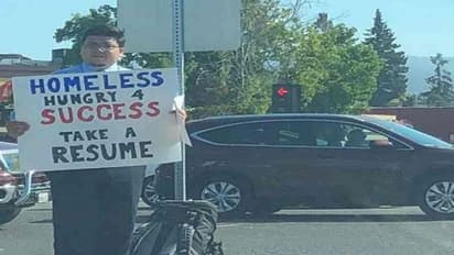 ഒടുവില് മറ്റൊരു ഗതിയുമില്ലാതായതോടെയാണ് ഡേവിഡ് പുതിയ ആശയവുമായി തെരുവിലേക്കിറങ്ങിയത്. എക്സിക്യൂട്ടീവ് ലുക്കില് വസ്ത്രം ധരിച്ച് കൈയ്യില് പ്ലക്കാർഡുമായി റോഡ് സൈഡില് നില്ക്കുന്ന ഡേവിഡിനെ അത്ഭുതത്തോടെയാണ് ആദ്യം ആളുകള് നോക്കിയത്. പ്ലക്കാർഡ് വായിച്ചവര് ഞെട്ടി. 'homeless,hungry 4 success,take a resume'-; എന്നാണ് പ്ലക്കാർഡിലെ വാചകം.