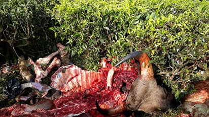തൊഴിലാളികള് നല്കിയ വിവരത്തെ തുടര്ന്നെത്തിയ വനപാലകര് പോലീസ് നായയെ ഉപയോഗിച്ച് പരിശോധനങ്ങള് നടത്തിയെങ്കിലും പ്രതികളെ കണ്ടെത്താന് കഴിഞ്ഞില്ല. ബുധനാഴ്ച രാത്രിയില് തെയില തോട്ടത്തില് വെടിയൊച്ച കേട്ടതായി തൊഴിലാളികള് വനപാലകരെ അറിയിച്ചിരുന്നു. എന്നാല് സംഭവം പുറത്തറിയിക്കാതെ വനപാലകര് ഒളിപ്പിച്ചു വെച്ചിരിക്കുകയാണെന്ന് ആരോപണമുയരുന്നുണ്ട്.