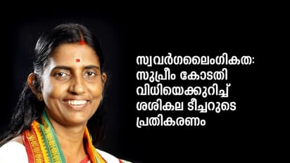 തിരുവനന്തപുരം: സ്വവര്ഗ്ഗലൈംഗികത സ്വഭാവ വൈകൃതമാണെന്നും അതിനെ സ്വാതന്ത്ര്യമായി തെറ്റിദ്ധരിക്കുകയാണെന്ന് സംശയമുണ്ടെന്നും ഹിന്ദു ഐക്യവേദി സംസ്ഥാന അധ്യക്ഷ കെപി ശശികല. സ്വവര്ഗ്ഗാനുരാഗം നിയമ വിധേയമാക്കിക്കൊണ്ടുള്ള സുപ്രീം കോടതി വിധിയുടെ പശ്ചാത്തലത്തില് ഏഷ്യാനെറ്റ് ന്യൂസ് ഓണ്ലൈനിനോട് പ്രതികരിക്കുകയായിരുന്നു കെ.പി ശശികല.