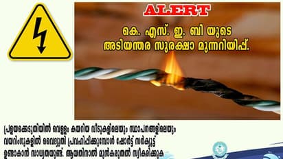 1) വൈദ്യുതി ലൈനുകളില് അറ്റകുറ്റപ്പണികള് നടന്നുവരുന്നതിനാല് ഏതുസമയത്തും ചാര്ജ് ചെയ്യാന് സാധ്യതയുണ്ട്. വീടിൻ്റെ പരിസരത്ത് സര്വീസ് വയര്/ലൈന് കമ്പി / എര്ത്ത് കമ്പി ഇവ പൊട്ടിക്കിടക്കുന്നതോ താഴ്ന്നുകിടക്കുന്നതോ കണ്ടാല് അതില് സ്പര്ശിക്കരുത്. ഇക്കാര്യം ഉടന് കെഎസ്ഇബി ഓഫീസിലോ 9496061061 എന്ന നമ്പരിലോ അറിയിക്കണം.