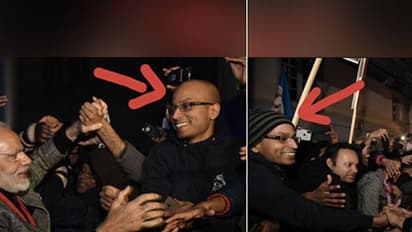 എന്നാല് ഇത് തിരിച്ചറിയാതിരിക്കാന് ഇദ്ദേഹം ഒരു സൂത്രവും പ്രയോഗിച്ചിരുന്നു. ഒന്നാമത്തെ ചിത്രത്തില് മൊട്ടയടിച്ച തലയുമായാണ് യുവാവ് പ്രത്യക്ഷപ്പെടുന്നത്. എന്നാല് രണ്ടാമത്തെ ചിത്രത്തില് ഇയാള് തലയില് ഒരു തൊപ്പിയണിഞ്ഞിട്ടുണ്ട്. മൊട്ടത്തല കാണിച്ച് കൈ കൊടുത്തതിന് ശേഷം പെട്ടെന്ന് തന്നെ മുന്നിലേക്ക് ഓടി തൊപ്പി അണിഞ്ഞ് ഫോട്ടോ എടുത്തതാകാമെന്നാണ് കരുതപ്പെടുന്നത്.