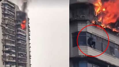 തീവിഴുങ്ങിയ കെട്ടിടത്തിന്റെ ഇരുപത്തി മൂന്നാം നിലയില് അയാള് ജീവനും മുറുകെ പിടിച്ച് തൂങ്ങിക്കിടന്നു. ശരീരത്തിലും തലയിലും വീഴുന്ന കെട്ടിടത്തിന്റെയും ചില്ലുകഷ്ണങ്ങളും അയാള് തട്ടിത്തെറിപ്പിച്ച് ഏറെ നേരം കമ്പികളില് തൂങ്ങി നിന്ന ആ ചൈനാ സ്വദേശിയെ ഒരു വിധമാണ് ഫയര്ഫോഴ്സ് സംഘം രക്ഷപെടുത്തിയത്. ചൈനയില് നിന്നുമുള്ളതാണ് ഞെട്ടിക്കുന്ന ദൃശ്യങ്ങള്.
