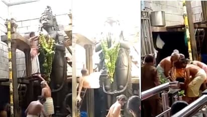 തുളസിമാല ചാര്ത്താനായി പ്രതിഷ്ഠയില് കയറിയതായിരുന്നു പൂജാരി. ഭക്തര് നല്കുന്ന തുളസി മാലകളാണ് പ്രതിഷ്ഠയില് ചാര്ത്തുക. കല്ലുകൊണ്ടുണ്ടാക്കിയ 11 അടി ഉയരമുള്ള ഏണിയിൽ നിന്നാണ് മാലകൾ ചാർത്തുക. ഏണിയിൽനിന്ന് പ്രതിഷ്ഠയില് തുളസിമാല ചാര്ത്തുന്നതിനിടെ കാല് തെറ്റി നിലത്തേയ്ക്കു വീഴുകയായിരുന്നു. തലയ്ക്ക് സാരമായി പരുക്കേറ്റ പൂജാരിയെ അടുത്തുള്ള ആശുപത്രിയിൽ പ്രവേശിപ്പിച്ചെങ്കിലും ചൊവ്വാഴ്ചയോടെ മരണം സംഭവിക്കുകയായിരുന്നു.
