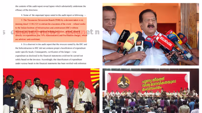 സംഗമത്തിന്റെ മറവിൽ വൻ തട്ടിപ്പ് നടത്തി. നടത്തിപ്പ് ചുമതല ഊരാളുങ്കലിന് എങ്ങനെ നൽകാനാവും. കട്ടിലും കിടക്കയും ആര് അടിച്ചോണ്ട് പോയി.നടത്താത്ത ഭജനയുടെ പേരിൽ പോലും ബില്ല് ഉണ്ടാക്കി. വി എൻ വാസവൻ രാജി വെക്കണം. നിലവിൽ വരുന്ന വാർത്തകൾ അനുസരിച്ചാണെങ്കിൽ അയ്യപ്പ സംഗമത്തിന്റെ കണക്കില് വലിയ കുഴപ്പമാണ്. അയ്യപ്പ സംഗമം സംബന്ധിച്ച് സാധാരണ പൗരന് അറിയേണ്ട കാര്യങ്ങൾ എല്ലാം അറിയണം. മന്ത്രിയും ദേവസ്വം ബോർഡും തമ്മിൽ രണ്ട് അഭിപ്രായം ഉണ്ടോയെന്നും ചെന്നിത്തല ചോദിച്ചു.