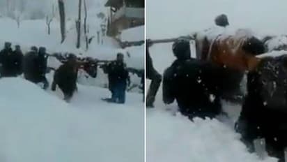 കിഴക്കേ കശ്മീരിലെ ഷീരി മേഖലയിലാണ് സംഭവം. ഗർഭിണിയായ യുവതിയുടെ നില അതീവ ഗുരുതരമായിരുന്നു. മഞ്ഞുവീഴ്ച്ചയായതിനാൽ ആംബുലൻസിന് വീട്ടിലേക്ക് വരാൻ കഴിയില്ല. തുടർന്ന് യുവാക്കൾ ചേർന്ന് യുവതിയെ എടുത്ത് കൊണ്ടുപോകുകയായിരുന്നു. വഴി മുഴുവൻ മഞ്ഞ് മൂടിയതിനാൽ ആളുകൾ നടക്കാൻ ബുദ്ധിമുട്ടി. എന്നാൽ എല്ലാ പ്രതിസന്ധികളേയും കവച്ചുവച്ച് യുവാക്കൾ യുവതിയെ ഷീരിയിലെ ആശുപത്രിയിൽ പ്രവേശിപ്പിച്ചു. യുവതിയും കുഞ്ഞും സുഖമായിരിക്കുന്നതായി ആശുപത്രി അധികൃതർ അറിയിച്ചു.