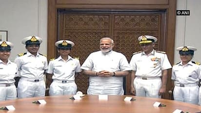 ദില്ലി: നാവിക സാഗര് പരിക്രമ എന്ന ചരിത്ര ദൗത്യം പൂര്ത്തിയാക്കി ഇന്ത്യന് നേവിയുടെ അഭിമാനമായി മാറിയ ആറംഗ വനിതാ സംഘത്തെ പ്രധാനമന്ത്രി സന്ദര്ശിച്ചു. ലെഫ്റ്റനന്റ് കമാന്റര് വര്ത്തിക ജോഷിയുടെ നേതൃത്വത്തിലാണ് ആറംഗ സംഘം ലോകം ചുറ്റിയത്.