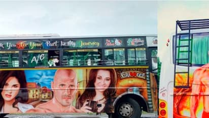 തിരുവനന്തപുരത്തെ കല്ലമ്പലം സ്വദേശിയായ ഷെറിൻ ആണ് ചിക്കൂസ് ടൂർസ് ആന്റ് ട്രാവൽസിന്റെ ഉടമ. ''സാധാരണ കോളേജ് സ്റ്റുഡന്റ്സിന്റെ ടൂർ പരിപാടികൾക്കാണ് ഞങ്ങൾ കൂടുതലും പോകാറുള്ളത്. ബസ് ബുക്ക് ചെയ്യുമ്പോൾ തന്നെ കുട്ടികൾ സണ്ണി ലിയോണിയുടെയും മിയാ ഖലീഫയുടെയുടെയുമൊക്കെ ഫ്ലക്സ് റെഡിയാക്കി വയ്ക്കും. ബസ്സിന്റെ പുറകിലാണ് അത് കെട്ടിവയ്ക്കുന്നത്. സാധാരണ അവിടെയാണ് ട്രാവൽസിന്റെ ഫോൺ നമ്പർ ഉൾപ്പെടെയുളള വിശദ വിവരങ്ങൾ എഴുതിവയ്ക്കുന്നത്. കുട്ടികൾ ബാനർ വലിച്ചു കെട്ടുന്നതോടെ ഇതെല്ലാം മറഞ്ഞുപോകും. എന്നാൽപ്പിന്നെ അവരുടെ ഫ്ലക്സിലെ താരങ്ങളെ തന്നെ ബസ്സിൽ ചിത്രങ്ങളാക്കാമെന്ന് തീരുമാനിച്ചു. ടൂറിന് വരുന്ന കുട്ടികളിൽ നിന്നാണ് യഥാർത്ഥത്തിൽ ഇങ്ങനെയൊരു ആശയം കിട്ടിയത് തന്നെ'' ഷെറിൻ ഏഷ്യാനെറ്റ് ന്യൂസ് ഡോട്ട് കോമിനോട് പറഞ്ഞു.