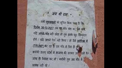 വന്ഭൂരിപക്ഷത്തോടെ ഉത്തര്പ്രദേശില് ബി.ജെ.പി അധികാരത്തില് വന്നതിന് പിന്നാലെയാണ് പോസ്റ്ററുകള് പ്രത്യക്ഷപ്പെട്ടത്. ഈ വര്ഷം അവസാനം വരെ ഗ്രാമത്തിലെ മുസ്ലിംകള്ക്ക് ഒഴിഞ്ഞുപോകാന് സമയം നല്കുകയാണെന്നും അതിന്ശേഷവും തുടരുന്നവര് പ്രത്യാഘാതം അനുഭവിക്കേണ്ടി വരുമെന്നും പോസ്റ്ററുകളില് പറയുന്നു. ഗ്രാമത്തിലെ ഹിന്ദുക്കള് എന്ന പേരില് പതിച്ചിരിക്കുന്ന പോസ്റ്ററുകളില് രക്ഷാധികാരിയായി ഒരു ബി.ജെ.പി എം.പിയുടെ പേരാണ് നല്കിയിരിക്കുന്നത്. ഗ്രാമവാസികള് പരാതിപ്പെട്ടതനുസരിച്ച് പോലീസ് സ്ഥലത്തെത്തി ഒട്ടുമിക്ക പോസ്റ്ററുകളും നീക്കം ചെയ്തിട്ടുണ്ടെങ്കിലും അവരുടെ കണ്ണില് പെടാത്ത ചിലത് ഇപ്പോഴും അവശേഷിക്കുന്നുണ്ട്.