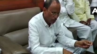 ബെംഗളൂരുവിലെ ഗോള്ഡ് ഫിഞ്ച് ഹോട്ടലില് തങ്ങുകയായിരുന്ന ഇദ്ദേഹം കോണ്ഗ്രസ് നേതാക്കളായ ഡി.കെ.ശിവുകുമാറും ഉഗ്രപ്പയുമായി നടത്തിയ ചര്ച്ചകള്ക്കൊടുവിലാണ് വിധാന് സഭയിലെത്തിയത്, വിധാന് സഭയില് കോണ്ഗ്രസ് നേതാക്കളുടെ ഇടയിലിരുന്ന് ഭക്ഷണം കഴിക്കുന്ന ഗൗഡയുടെ ചിത്രങ്ങള് വാര്ത്ത ഏജന്സിയായ എ.എന്.ഐ പുറത്തു വിട്ടിട്ടുണ്ട്.