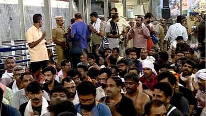 നിരോധനാജ്ഞ നിലനില്ക്കുന്ന പ്രദേശമാണെന്നും നടപന്തലിലെ പ്രതിഷേധം നിയമവിരുദ്ധമാണെന്ന് പൊലീസ് പ്രതിഷേധക്കാരെ അറിയിച്ചു. അറസ്റ്റ് ചെയ്യേണ്ടിവരുമെന്നും പൊലീസ് പ്രതിഷേധക്കാരെ അറിയിച്ചു. എന്നാല് പ്രതിഷേധക്കാര് ഇതുവരെ പിന്മാറാന് തയ്യാറായിട്ടില്ല. പ്രതിഷേധം തുടര്ന്ന സാഹചര്യത്തിലാണ് നാല് പേരെ കസ്റ്റഡിയിലെടുത്തത്. കസ്റ്റഡിയില് എടുക്കുന്നതിനെതിരെയും പ്രതിഷേധം നടന്നു.അതേസമയം ഞങ്ങള് പ്രതിഷേധം നടത്തുകയല്ല ശരണം വിളിക്കുകയാണെന്നുമായിരുന്നു ഇവര് പൊലീസിനോട് പറഞ്ഞത്. തങ്ങൾ ഭക്തരാണെന്നും നട അടക്കുന്നത് വരെ നാമജപം നടത്താന് ഞങ്ങള്ക്ക് അവകാശമുണ്ടെന്നുമാണ് ഇവര് പൊലീസിനോട് പറഞ്ഞു.