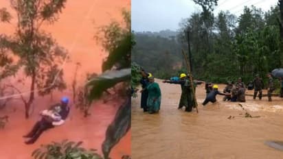 കുടക്: പ്രളയം കനത്ത നാശം വിതച്ച കുടകില് നിന്ന് ജീവന് പണയപ്പെടുത്തി പിഞ്ചുകുഞ്ഞിനെ രക്ഷിക്കുന്ന എന്.ഡി.ആര്.എഫ് രക്ഷാപ്രവര്ത്തകന്റെ വീഡിയോ. എന്.ഡി.ടി.വിയാണ് വീഡിയോ പുറത്തുവിട്ടത്. കുത്തിയൊലിക്കുന്ന പുഴയുടെ അക്കരെ നിന്ന് കയറില് തൂങ്ങിയാണ് ഇയാള് കുഞ്ഞിനെ രക്ഷപ്പെടുത്തിയത്.