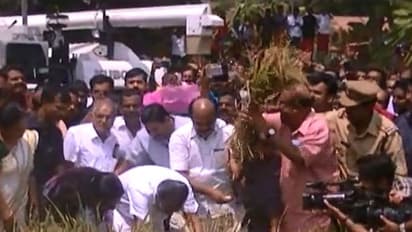 ചെണ്ട മേളത്തിന്റെ അകമ്പടിയില് പാടത്തിറങ്ങിയ മന്ത്രിമാര് പുരുഷാരങ്ങളുടെ ആര്പ്പ് വിളികളില് സ്വയംമറന്നു. അരിവാള് കൊണ്ട് നെല്ക്കതിര് കൊയ്തെടുത്ത് അതിവേഗം മന്ത്രി ചന്ദ്രശേഖരന് കറ്റയുണ്ടാക്കി. ആളുകള് കാണ്കെ മന്ത്രി മുകളിലേക്ക് ഉയര്ത്തിയപ്പോള് ' ചന്ദ്രേട്ടന് കലക്കി' എന്ന ആളുകളുടെ ആര്പ്പ് വിളിക്കിടെയാണ് മുഖ്യമന്ത്രി പിണറായി വിജയന് നെല്കറ്റ തീര്ത്തത്. മുഖ്യമന്ത്രിയുടെ ഭാര്യ കമല വിജയനും നെല്ല് കൊയ്യാനായി പാടത്തിറങ്ങി.