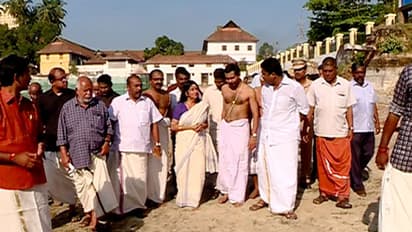 തിരുവനന്തപുരം: ശ്രീ പത്മനാഭ സ്വാമി ക്ഷേത്രത്തിലെ പത്മതീര്ത്ഥ കുളത്തിലെ കല്മണ്ഡപങ്ങള് പൊളിച്ചതിനെതിരെ രാജകുടുംബാംഗങ്ങളുടെ പ്രതിഷേധം. അശ്വതി തിരുനാള് ഗൗരി ലക്ഷ്മിഭായുടെ നേതൃത്വത്തില് രാവിലെ കുളത്തിലിറങ്ങി പ്രതിഷേധിച്ചു. പരാതി ഉയര്ന്ന സാഹചര്യത്തില് നാളെ നീണ്ടും ഭരണസമിതി യോഗം ചേരും.