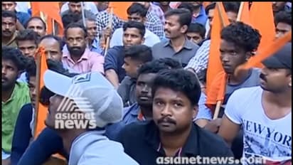 അതേസമയം ബിജെപി അനുകൂലികളായ കുടുംബം കനകദുര്ഗയെ തള്ളി രംഗത്തെത്തിയതോടെ പ്രതിഷേധം അങ്ങാടിപ്പുറം നഗരത്തിലേക്ക് മാറ്റുകയായിരുന്നു. അങ്ങാടിപ്പുറം- മലപ്പുറം റോഡിന് നടുവില് ഗതാഗതം തടസ്സപ്പെടുത്തിക്കൊണ്ടാണ് സംഘപരിവാര് പ്രവര്ത്തകരുടെ പ്രതിഷേധം നടന്നത്. റോഡിന് നടുവില് കുത്തിയിരുന്നു പ്രതിഷേധിച്ച സംഘം വഴിയാത്രക്കാരെയും ആക്രമിച്ചു. റോഡിലൂടെ പോയ ബൈക്ക് യാത്രക്കാരനെ തള്ളിയിട്ടും വഴിയാത്രക്കാരെ ആക്രമിച്ചും പ്രതിഷേധം അക്രമാസക്തമായിരുന്നു.