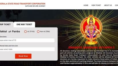 ഹോംപേജിൽ 'കെഎസ്ആടിസി ബസ് ടിക്കറ്റ്' എന്ന ലിങ്ക് കാണാം. അത് സെലക്ട് ചെയ്താൽ നിലയ്ക്കലിൽ നിന്ന് പമ്പയിലേക്കും തിരിച്ചുമുള്ള കെഎസ്ആർടിസി ടിക്കറ്റുകൾ ബുക്ക് ചെയ്യാനാകും. ആവശ്യമുള്ളവർക്ക് ക്ലോക്ക് റൂം സൗകര്യവും ഈ ലിങ്ക് വഴി ബുക്ക് ചെയ്യാവുന്നതാണ്.