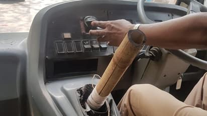 കഴിഞ്ഞ ദിവസം സ്കൂള് ബസ്സ് മറ്റൊരു കാറുമായി കൂട്ടിയിടിച്ചിരുന്നു. എന്നാൽ ഇടിച്ചതിന് ശേഷം ബസ് നിർത്താതെ പോയി. കാർ ഉടമ ബസ്സിനെ പിന്തുടർന്ന് പിടി കൂടിയപ്പോഴാണ് ഗിയർ ലിവറിന് പകരം മുളവടി പിടിപ്പിച്ചിരിക്കുന്നത് കണ്ടത്. മൊബൈലിൽ ദൃശ്യങ്ങൾ പകർത്തിയതിന് ശേഷം കാർ ഉടമ പൊലീസിൽ വിവരമറിയിക്കുകയായിരുന്നു. പൊലീസെത്തി രാജ്കുമാറിനെ അറസ്റ്റ് ചെയ്തു.
