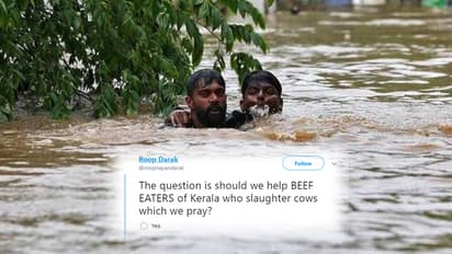സംഘപരിവാര് ബന്ധമുള്ള അക്കൗണ്ടുകളില്നിന്നാണ് 'ബീഫ് കഴിക്കുന്ന കേരള'ത്തെ സഹായിക്കരുതെന്നും ഒരു രൂപ പോലും സംഭാവന നല്കരുതെന്നും ആവശ്യപ്പെട്ടുകൊണ്ടുള്ള വിദ്വേഷ പോസ്റ്റുകള് ട്വിറ്ററില് പ്രചരിക്കുന്നത്.