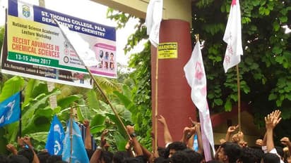 പാല: പാല സെന്റ് തോമസ് കോളേജില് മൂന്നു ദിവസമായി വിദ്യാര്ത്ഥികളുടെ സമരം തുടരുകയാണ്. വിദ്യാര്ത്ഥികള്ക്ക് യൂണിഫോം എല്ലാദിവസവും ഏര്പ്പെടുത്തിയതടക്കമുള്ള വിഷയങ്ങളാണ് വിദ്യാര്ത്ഥികള് ഉന്നയിക്കുന്നത്. എസ്എഫ്ഐ, കെ.എസ്.യു, കേരള കോണ്ഗ്രസ് വിദ്യാര്ത്ഥി വിഭാഗം എന്നീ സംഘടനകള് എല്ലാം സമരരംഗത്തുണ്ട്. ഒപ്പം തന്നെ എബിവിപിയും അടുത്ത ദിവസം സമര രംഗത്ത് എത്തുമെന്നാണ് വിദ്യാര്ത്ഥികള് പറയുന്നത്.