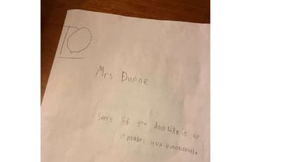 വളര്ത്തുനായ മരിച്ചതിനെ തുടര്ന്ന് അമ്മ ദുഖിതയായിരുന്നെന്നും സ്കൂളിലേക്ക് പോകാന് ബുദ്ധിമുട്ടി നില്ക്കുകയായിരുന്നെന്നും മകള്പറയുന്നു. ഈ സമയത്താണ് സ്കൂളിലെ അമ്മയുടെ വിദ്യാര്ത്ഥികളിലൊരാളുടെ ആശ്വസിപ്പിച്ചുകൊണ്ടുള്ള കത്ത് ലഭ്യമാകുന്നത്. ക്വാളം എന്ന കൊച്ചുമിടുക്കനാണ് കത്ത് എഴുതി പ്രിയപ്പെട്ട അധ്യാപികയെ ആശ്വസിപ്പിക്കാന് ശ്രമിച്ചത്.