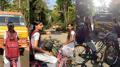 സ്കൂള് യൂണിഫോമില് സെെക്കിള് കുറുകെ വച്ച് വിദ്യാര്ഥിനികള് നിന്നതോടെ ടിപ്പര് ലോറിക്കാര് പത്തിമടക്കി. വിദ്യാര്ഥിനികളുടെ മാതാപിതാക്കള് ടിപ്പര് തടയുന്ന ചിത്രങ്ങള് സാമൂഹ്യ മാധ്യമങ്ങളില് പങ്കുവെച്ചതോടെയാണ് ഏറെ പേരാണ് ഇവരെ അഭിനന്ദിച്ച് എത്തുന്നത്.